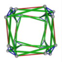 CC2_CLASS = 2, example 9: Strut: [1, 2, 4, 3]. Disjoint cycle form: [[3, 4]]. Cable 1: [2, 1, 3, 4]. Disjoint cycle form: [[1, 2]]. Cable 2: [4, 2, 1, 3]. Disjoint cycle form: [[1, 4, 3]]. Smallest equilibrium strut stress w1_min is .219223 occurring in representation dim3a.
